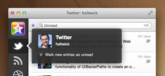 To don't get flooded by new articles you can set per source if you like to have new articles marked as unread or not. Just click a second time on the selected source and a pop over will appear where you can change the setting.