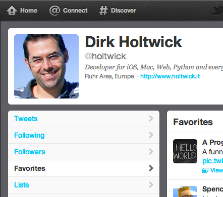 Favs fetches only those tweets that you marked as favorites by assigning a star to them. You can see your personal favorites by visiting the following page while beeing logged in to Twitter: https://twitter.com/#!/favorites This is were you find your favorites on the Twitter website: