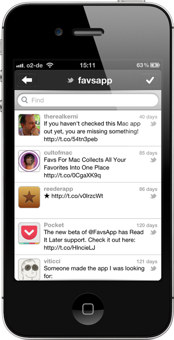 Favs - the successful internet favorites app - is now also available on iPhone. Already on MacOS it has proven its power in aggregating favorites, bookmarks, likes and more from 17 services like Facebook, Twitter and Google. Using the powerful build in search feature makes finding things you liked so easy. By also marking unread items Favs can be used as a sophisticated Reader too for favorites of other people you may follow using Favs. This all comes in a nice user interface which keeps the complex technology simple to use.